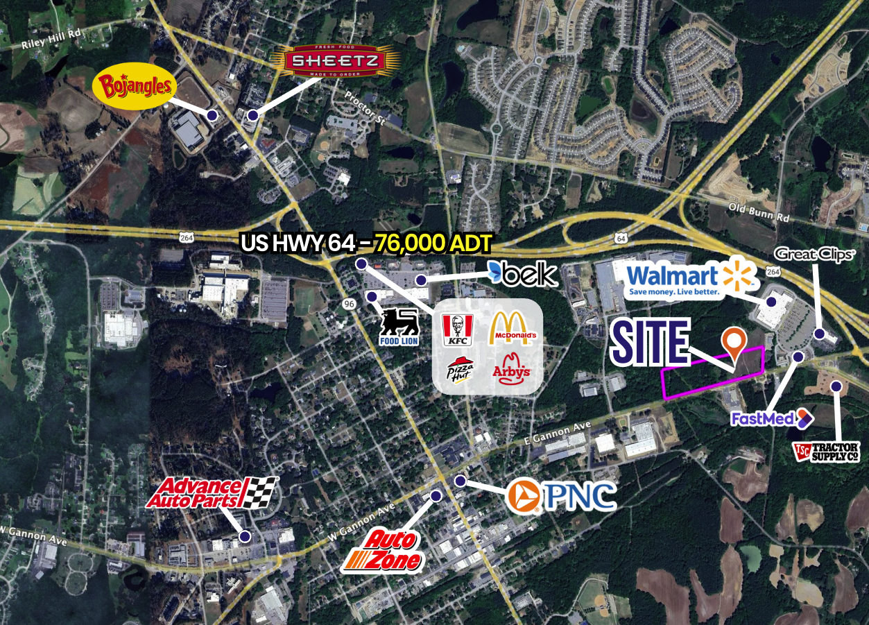 Access & Visibility: Positioned along Zebulon’s primary commercial corridor with prominent frontage and excellent regional connectivity to Raleigh and the broader Triangle region